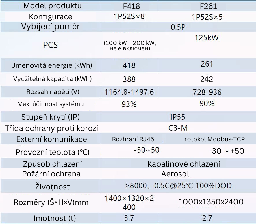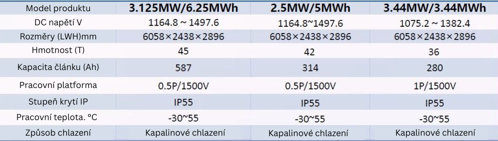 - Kapacita jednoho kontejneru 3,42 MWh, 4,56 MWh, 5 MWh