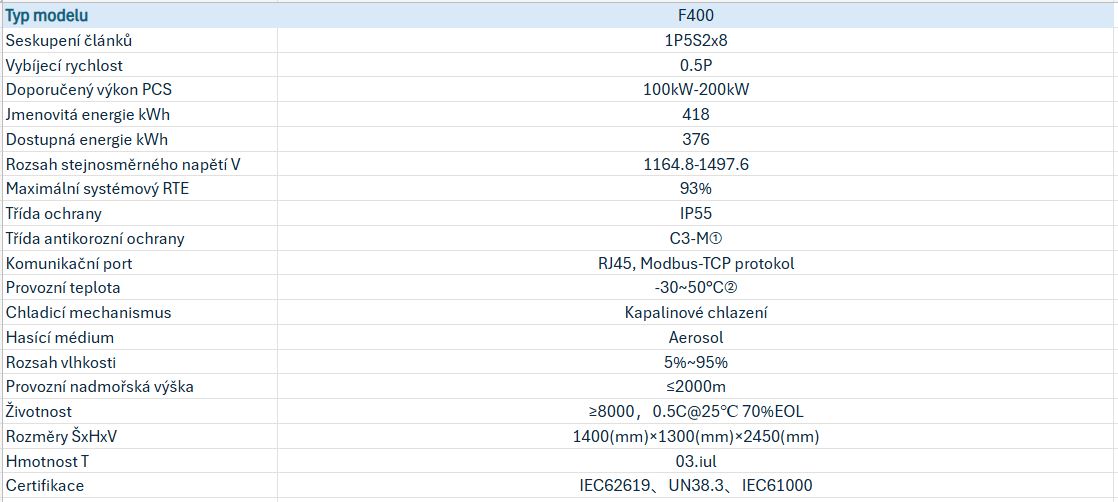 - Kapacita jednoho kontejneru 3,42 MWh, 4,56 MWh, 5 MWh